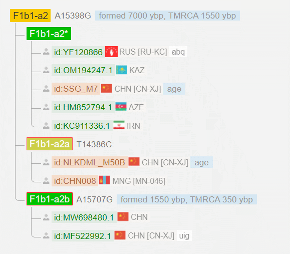 Выявленная у митохондриальная гаплогруппа F1b1-a2