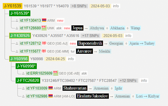 Гаплогруппа: J2a >> M67 >> Y30811 >> Y61539