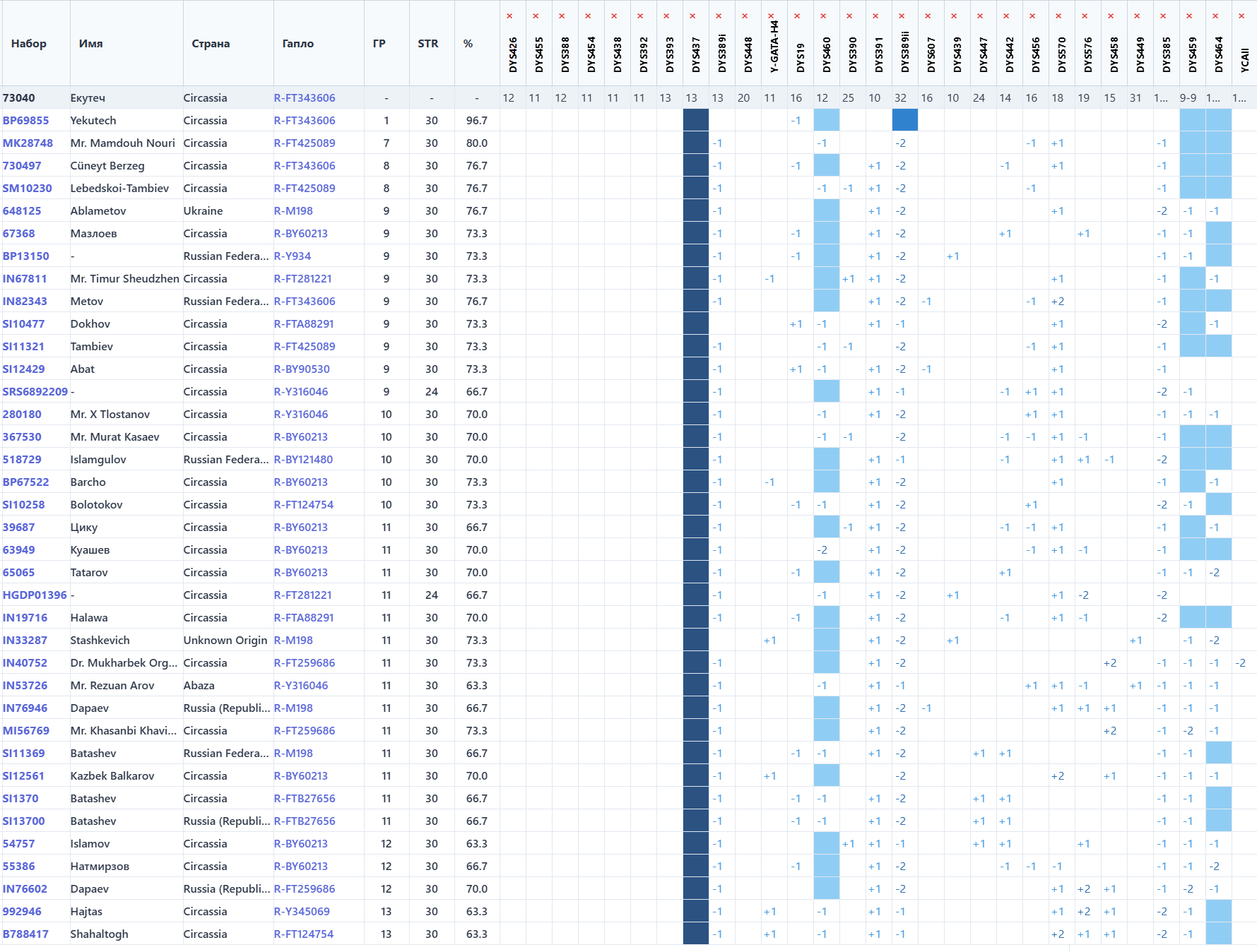 Исследовано 37 маркеров в лаборатории YSEQ