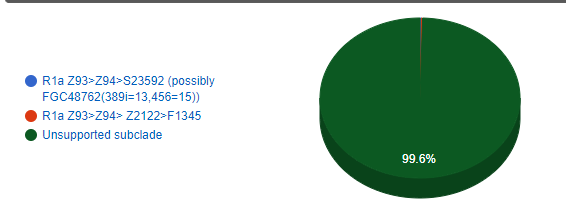 Выявлена гаплогруппа R1a. Наиболее вероятные субклады Z93 >> Y57 >> Y52