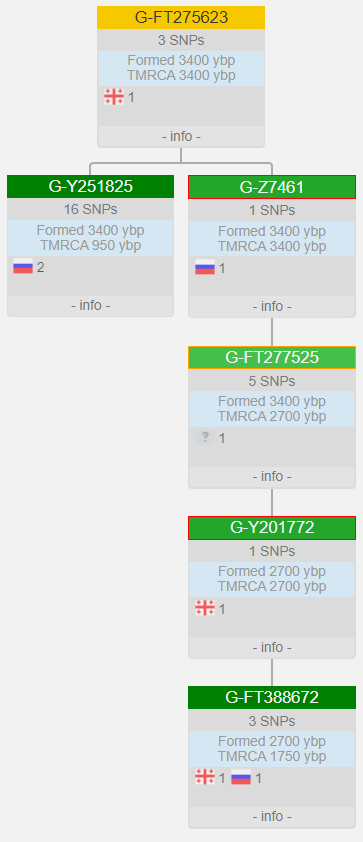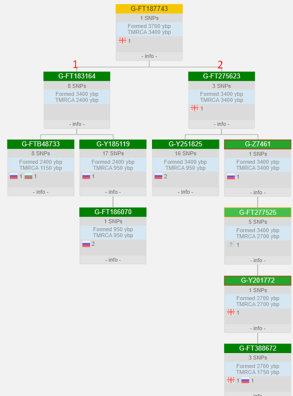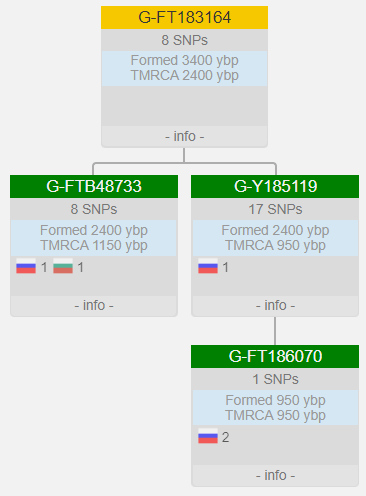У g2a1 DYS392 почти всегда равен 10. Кроме этого есть некоторые отличия выделяющие FT183164 и FT275623.