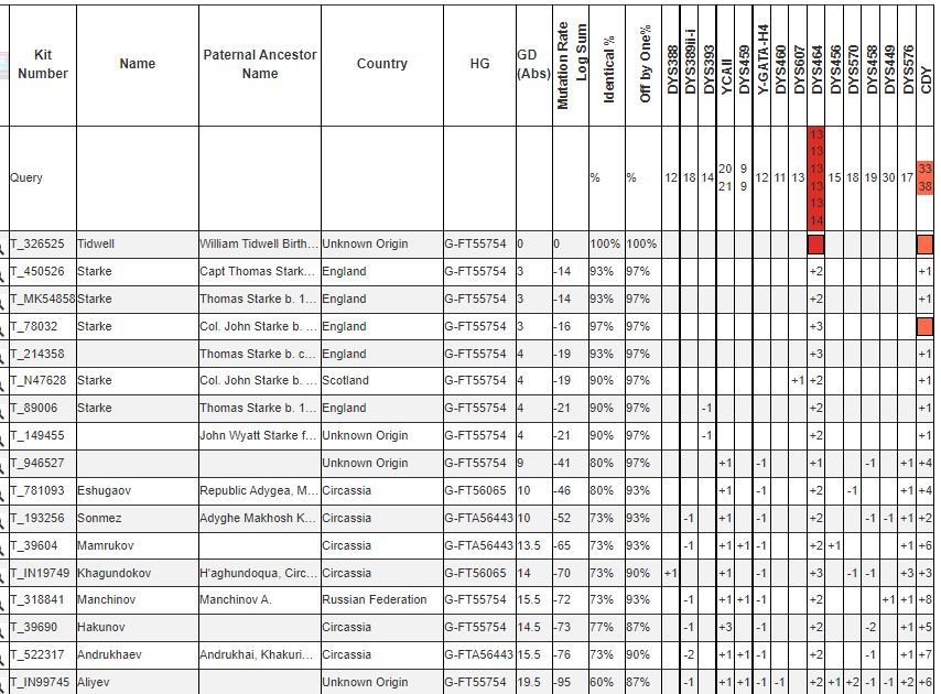 100% подтвержденных G-Y12277 в мире пока очень мало. В нашем проекте это в основном Мамхеги и Махошевцы — Ешугаов, Хагундоков, Андурхаев и Коджау (Сонмез). Также этот снип подтвержден у Английского клана Старк\Старке и производных от них Тидвел (см. прикрепленный скриншот).
