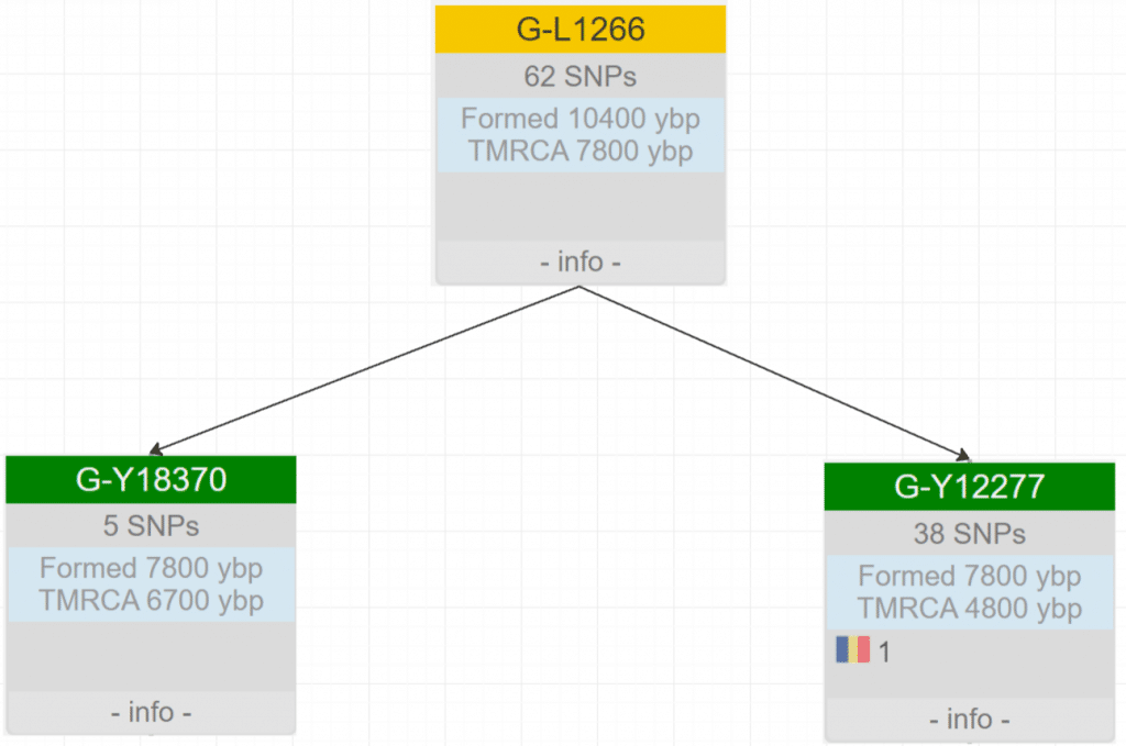 G-L1264 — это молодой субклад гаплогруппы G2a, который наиболее характерен для адыго-абхазов. У всех современных мужчин был общий 1 конкретный общий предок. Было это очень давное, более 200 тыс. лет назад. Более инетесный термин это последний общий предок. Мужчина который был предком всех последующих линий. Как патриарх конкретной фамилии, но в гораздо большем масштабе. Последний общий предок всех носителей G-L1264 жил примерно 4300 лет назад, в конце эпохи ранней бронзы.