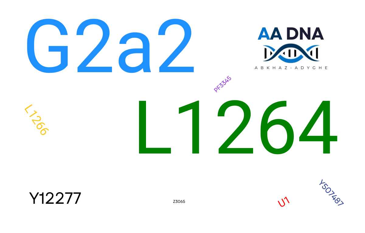 Говоря простым языком, родоначальник всех G2a2 L1264 жил более 2х тысяч лет до нашей эры и он уже относился к адыго-абхазам. Он конечно не было первым кто пришел на Кавказе и точно не был единственным кто тогда там жил. Но так получилось, что потомки этого мужчины распространились в среде адыго-абхазов, хотя и не только среди них. Однако следует понимать, что доля L1264 в других народах заметно ниже чем у адыго-абхазов.