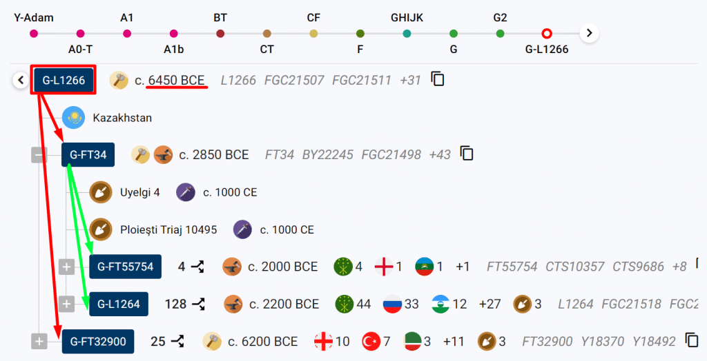 Если выражаться простым языком, L1266 это дедушка L1264. Один сын у L1264 в итоге стал частью значительной части адыгов и абхазов. А другой сын обосновался в Западной Грузии. Именно там чаще всего встречается линия Y18370 (FT32900).