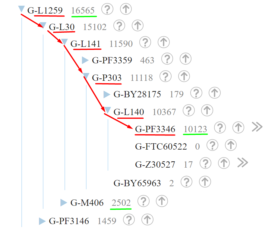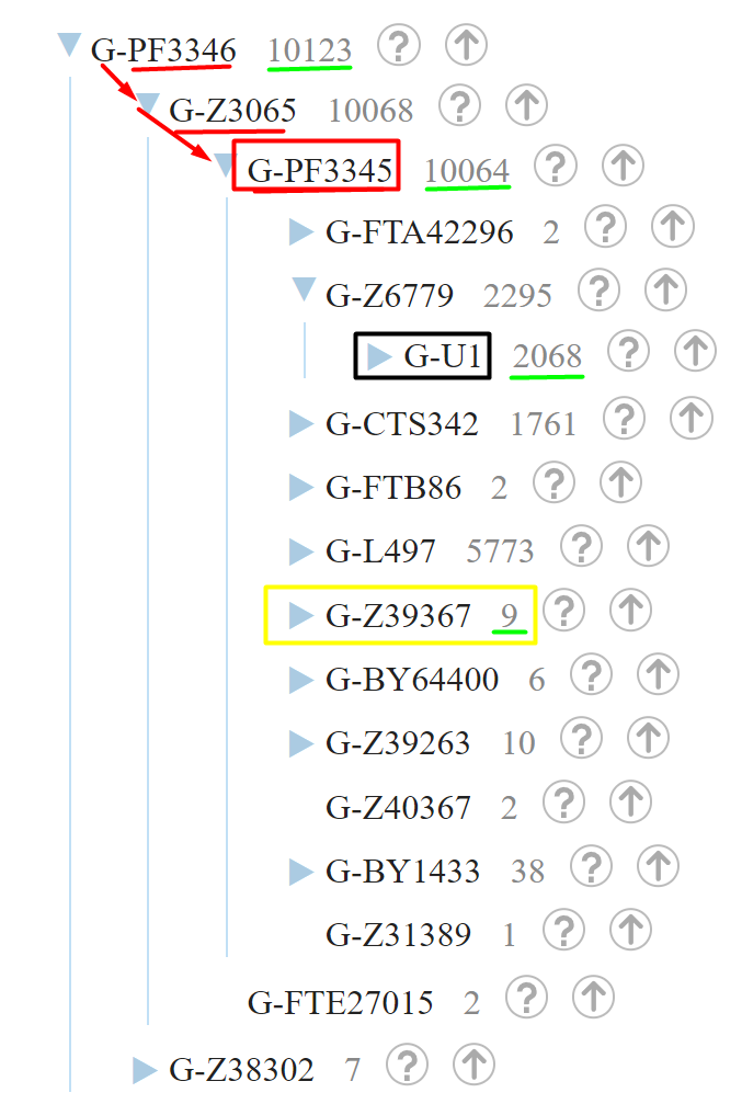 Adam > A0-T > A1 > A1b > BT > CT > CF > F > GHIJK > G > P287 > Y238 > P15 > L1259 > L30 > CTS574 > CTS2488 > P303 > CTS796 > L140 > PF3346 > PF3345 > Z39367