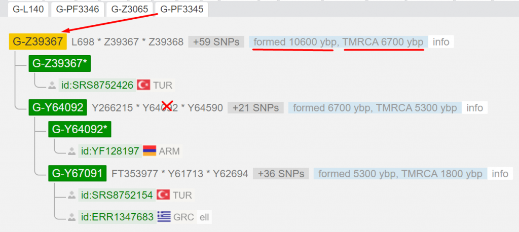 Z39367 более 10 тыс. лет назад отделилась от остальных линий PF3345. Вероятнее всего возникла эта ветка в Анатолии.