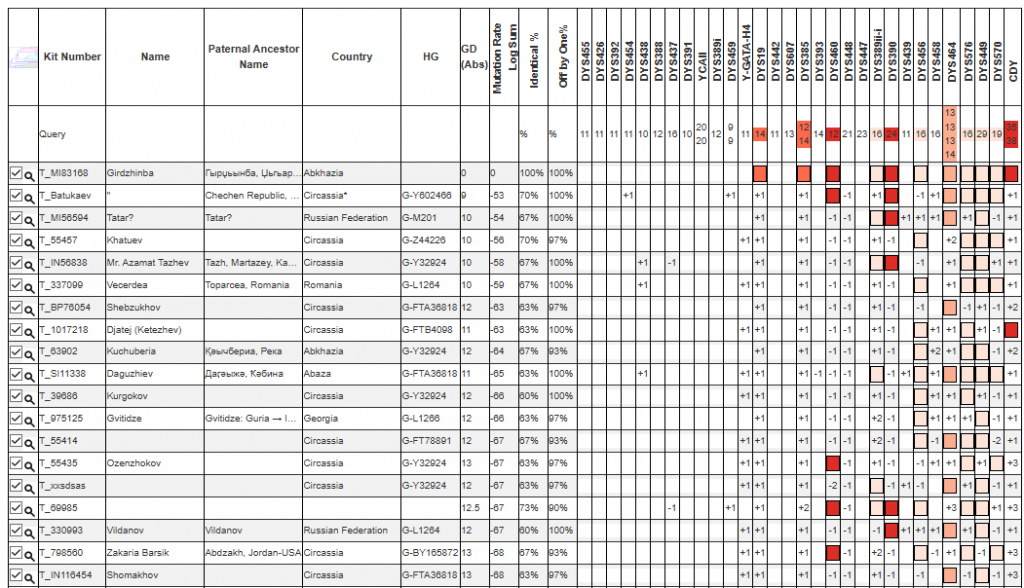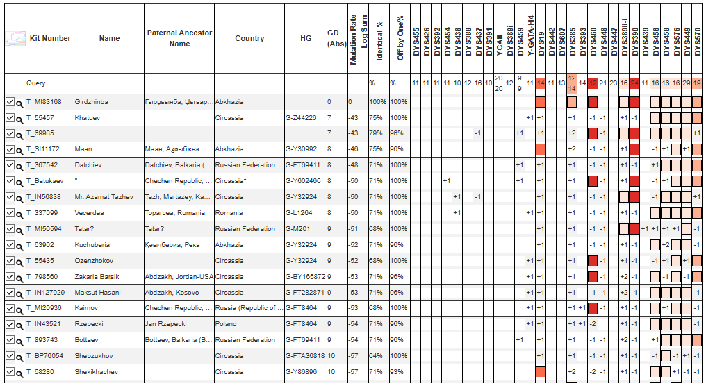 Протестированный принадлежит к абхазской крестьянской (анхаҩы) фамилии Гырџьынба из села Джгерда (Џьгьарда). Исторически представители этой фамилии проживали в местности Гырџьынаа рхәы (Холм рода Гирджин). Вероятно, с фамилией связан упоминаемый на картах XIX века поселок Гирджин, расположенный на границе Джгерды и Цабала. Фамилия также встречается в диаспоре, в селах Тандыр (цабальцы) и Кәыӡџа-қьои (абжуйцы).