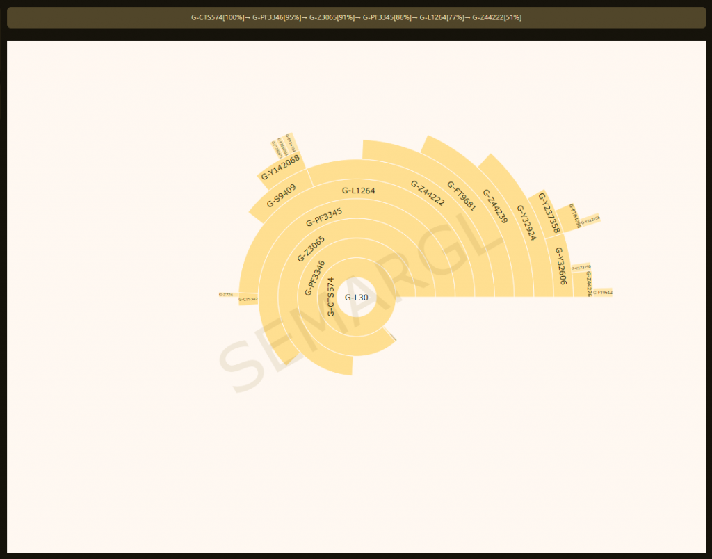 Adam > A0-T > A1 > A1b > BT > CT > CF > F > GHIJK > G > P287 > Y238 > P15 > L1259 > L30 > CTS574 > CTS2488 > P303 > CTS796 > L140 > PF3346 > PF3345 > Z6779 > U1 > L1266 > Y12277 > L1264 > FGC21495 > S9409