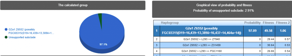 Выявлена гаплогруппа G2a1. Наиболее вероятные субклад > Y36036