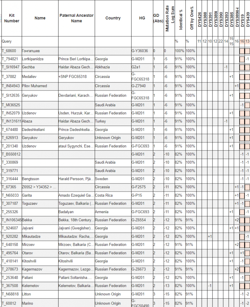 Поиск STR-совпадений в базе STR Match Finder помогает найти потенциальных родственников по мужской линии среди других протестированных из той же популяции. Мерой близости при этом служит генетическая дистанция, зависящая от числа мутационных различий