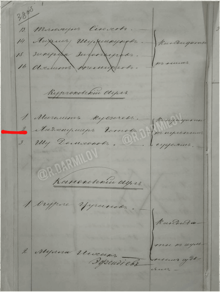 1868 год. Готов Хаджиумар упоминается в списке кандидатов на должность аульного судьи