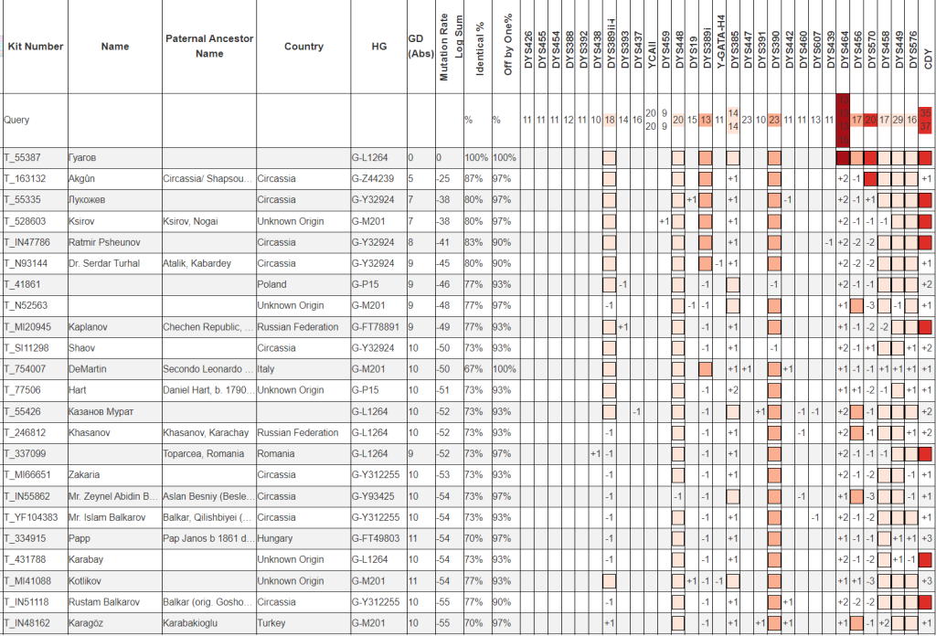 Поиск STR-совпадений в базе STR Match Finder помогает найти потенциальных родственников по мужской линии среди других протестированных из той же популяции. Мерой близости при этом служит генетическая дистанция, зависящая от числа мутационных различий