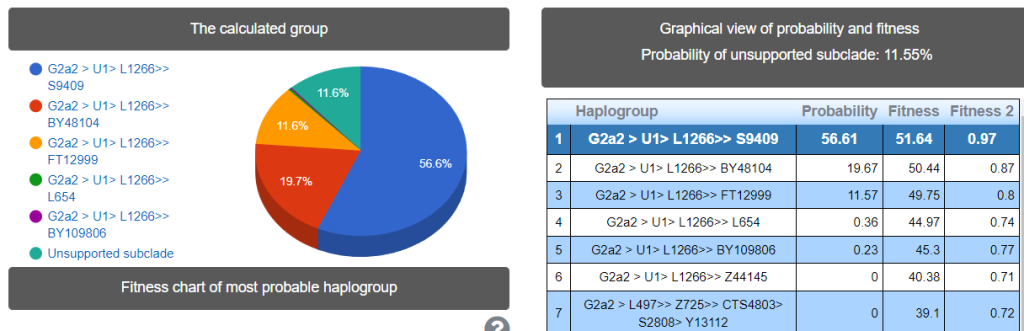 Выявлена гаплогруппа G2a2. Субклад G-L1264 >> Y32924