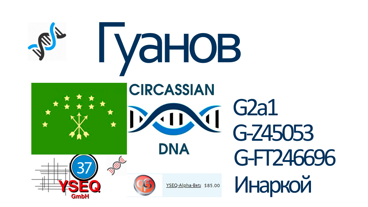 Гаплогруппа G2a1 одна из самых распространенных на Центральном Кавказе. За тысячи лет проживания на этой территории g2a1 разделились на множество линий. Выявленная у Гуанов Z45053 наиболее часто встречающаяся среди кабардинцев.