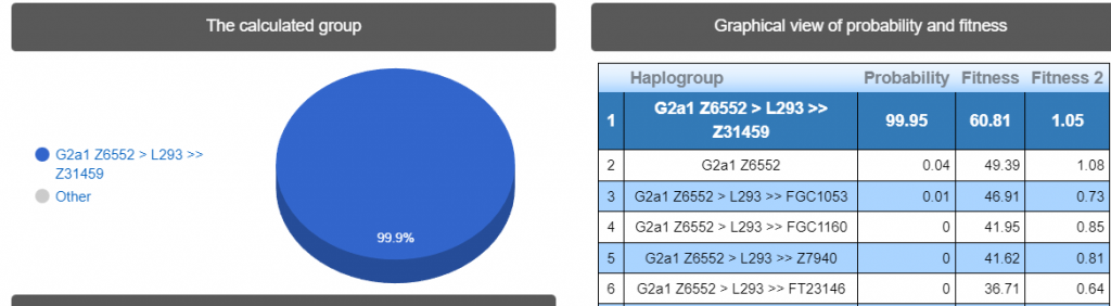 Выявлена гаплогруппа G2a1 >> Z45053 >> FT24669.
