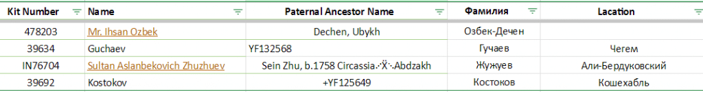 Интересно, что у Абукова некоторые маркеры такие же редкие как у Гучаева и Батукаева, хотя дистанция между ними очень большая. Вероятно эти маркеры были у их общих предков более 3,5 тысяч. лет назад, и у них они сохранились. В том время как у других нет.