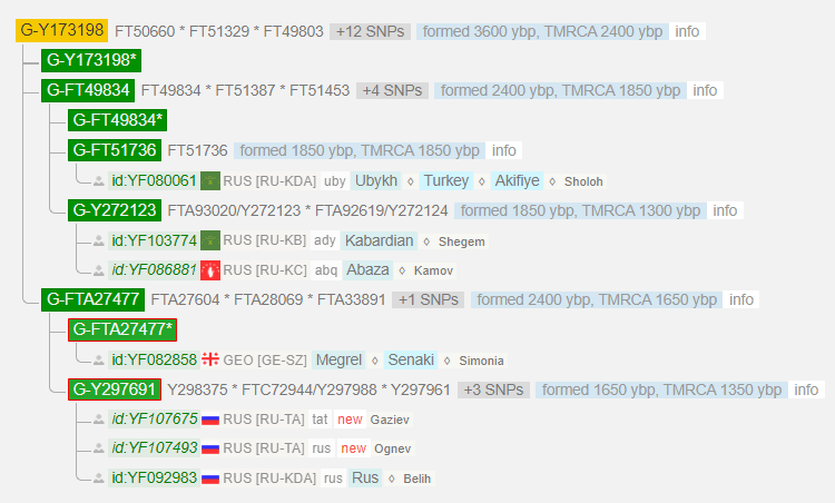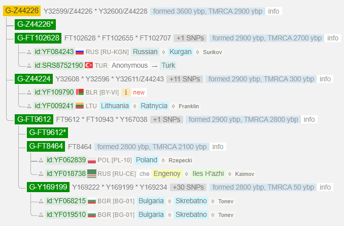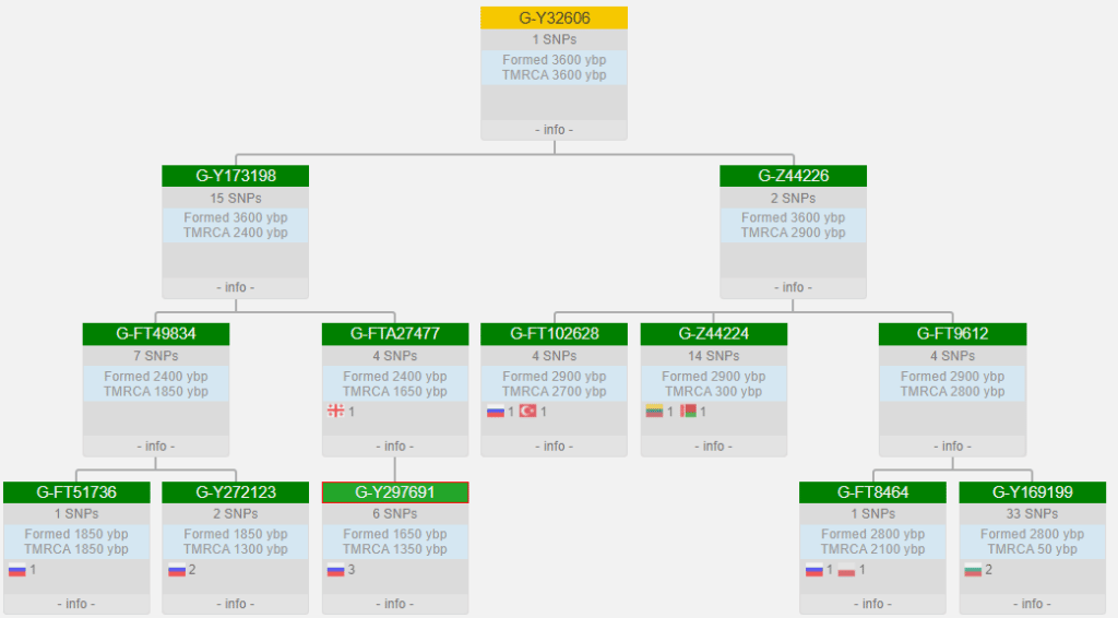 Гаплогруппа: G2a2 > G-L1264 > G-FT9681 > G-Y219946 > G-Y219854