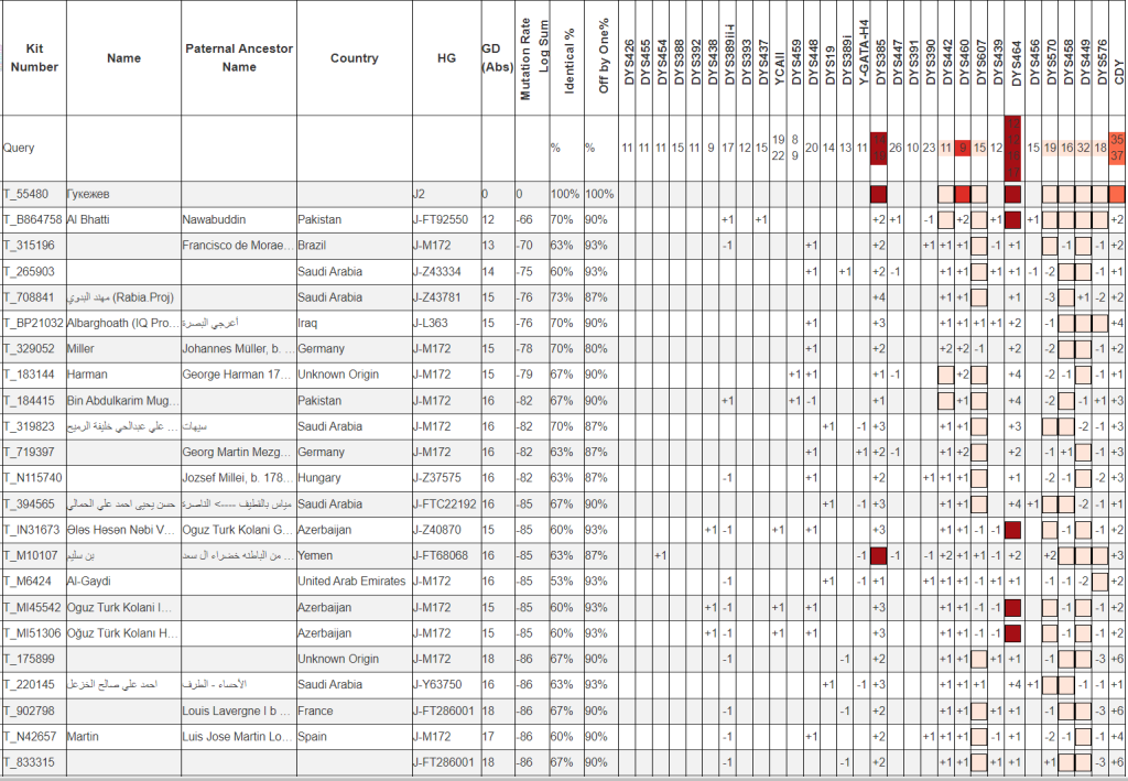 Результаты теста не совпали с ранее протестированным Гукежевым из Нартана. Выявленная линия гаплогруппы J2a довольно редко встречается на Кавказе и в России в целом. Более подробное описание ниже.