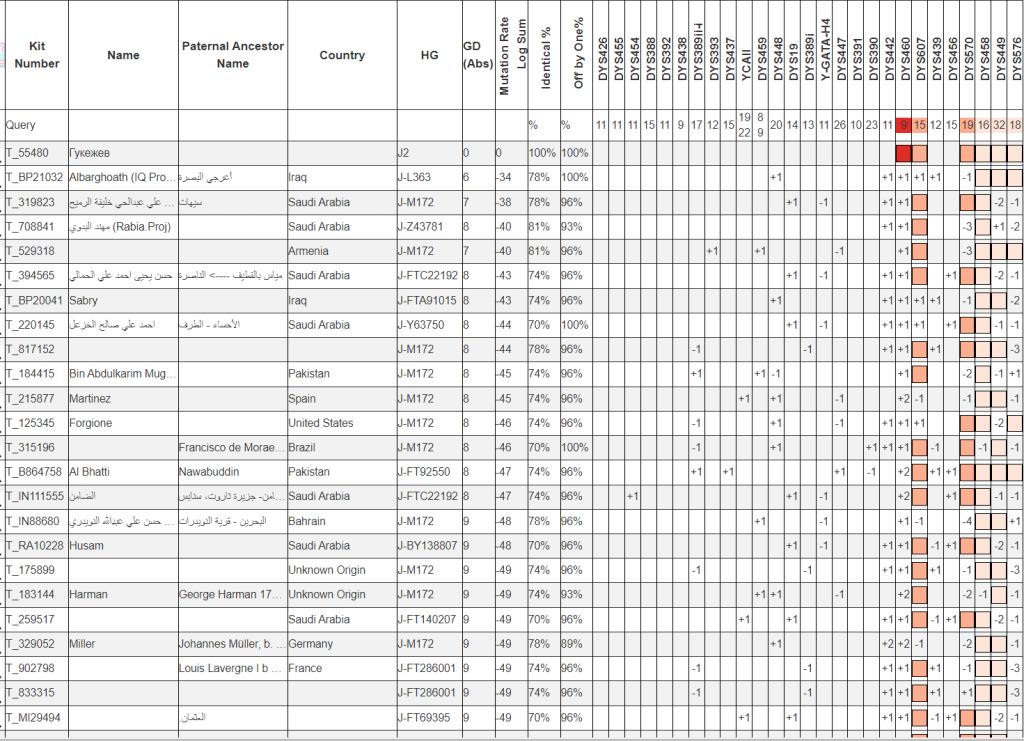 Поиск STR-совпадений в базе STR Match Finder помогает найти потенциальных родственников по мужской линии среди других протестированных из той же популяции. Мерой близости при этом служит генетическая дистанция, зависящая от числа мутационных различий