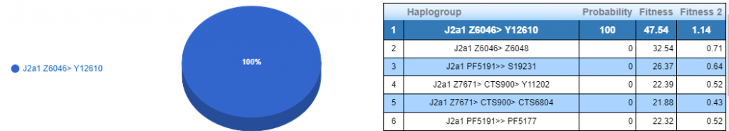 Выявлена гаплогруппа J2a. Наиболее вероятный субклад SK1317 >> Y26654