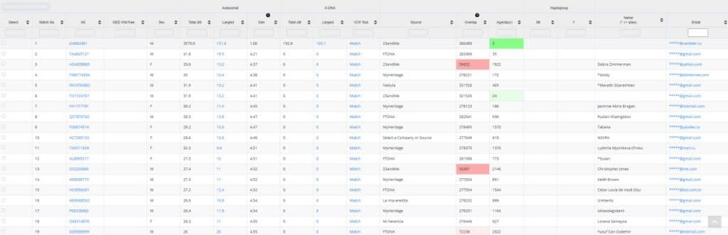 Существуют несколько компаний (сайтов) которые ведут базу данных аутосомных совпадений. Самые популярные из них FTDNA, Генотек и Gedmatch.