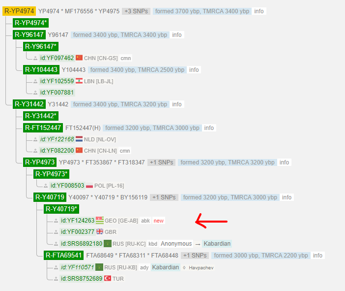 Adam > A0-T > A1 > A1b > BT > CT > CF > F > GHIJK > HIJK > IJK > K > K2 > K2b > P > P-V1651 > P-M1254 > P-P337 > P-P284 > P-P226 > R > R-Y482 > R1 > R1a > M459 > M735 > M198 > M417 > Z645 > Z93 > Z94 > Z2124 > Z2125 > Z2123 > Y934 > Y7094 > YP4974 > Y31442 > YP4973 > Y40719 > Y217811