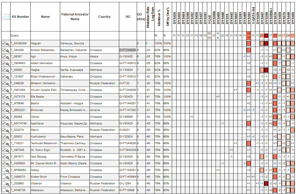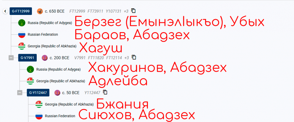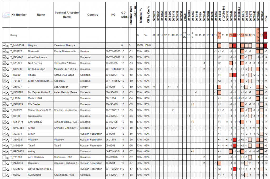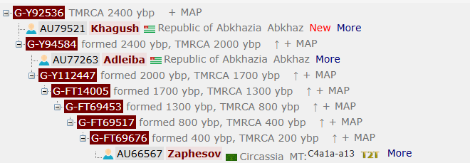 Для Хагуш из села Бзыпта был произведён полный Y тест и его результат был опубликован на мировые Y древа (Yfull, FTDNA, Theytree)