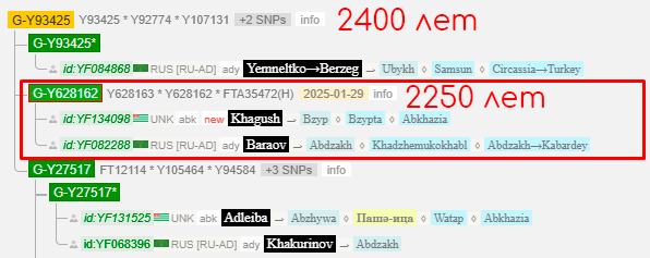 На древе Yfull была образована новая ветвь между Бараовым и Хагуш. Общий предок которых жил ~2250 лет тому назад.