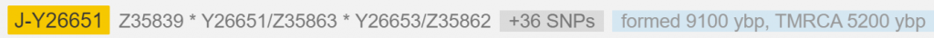 Adam > A0-T > A1 > A1b > BT > CT > CF > F > GHIJK > HIJK > IJK > IJ > J > J2 > M410 > PF4610 > Z6046 > Y12603 > SK1313 > Y12378 > Y27964 > SK1317 (Y26651) > Y26654 > Y26650 > Y156116