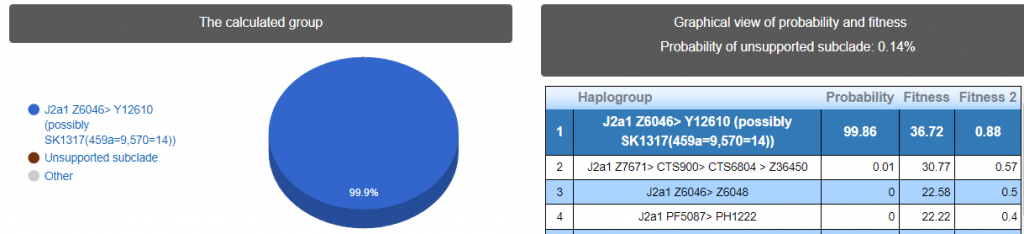 Выявлена гаплогруппа J2a. Наиболее вероятный субклад SK1317 >> Y26650 > Y156116