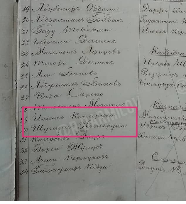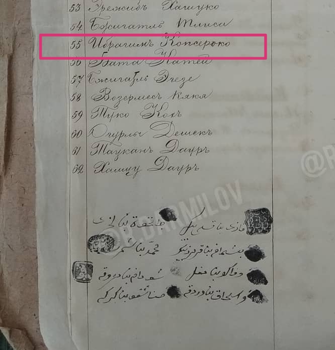 Упоминание Хапсироковых в архивном деле «Приказы Канцелярии об утверждении членов суда, рапорты начальников округов о предоставлении списков старшин, кадиев и депутатов окружных словесных судов. 1868-1869 гг.»