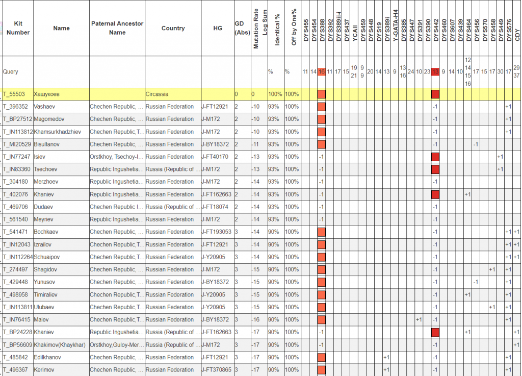 Выявленная у Хашукоева линия относится к одной из основных Вайнахских линий.