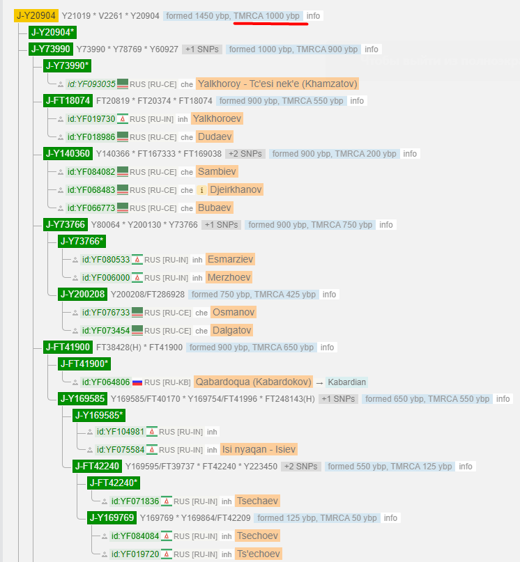 Гаплогруппа: J2 >> M67 >> CTS900 >> Y20904