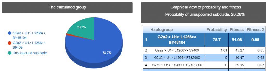 Выявлена гаплогруппа G2a2 G-L1264. Наиболее вероятный субклад