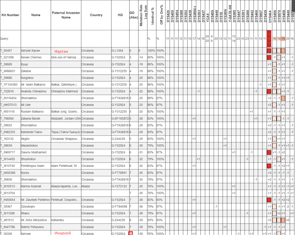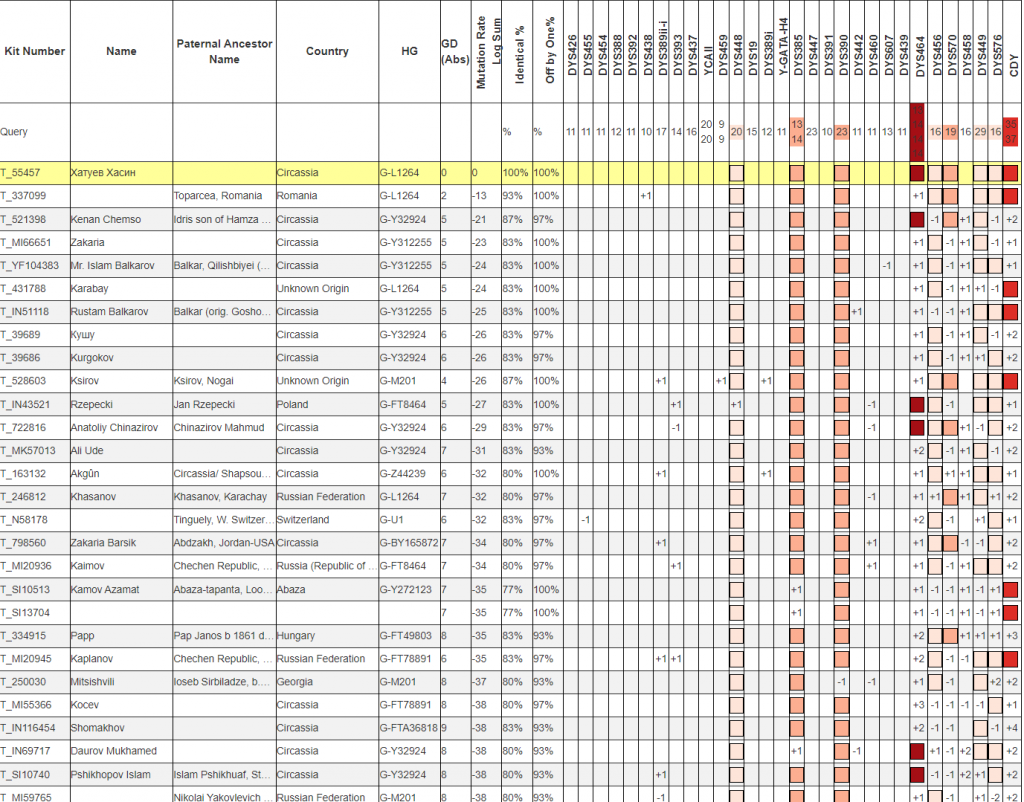 При сравнении маркеров только среди участников проекта в списке совпадений можно увидеть другого Хатуева.