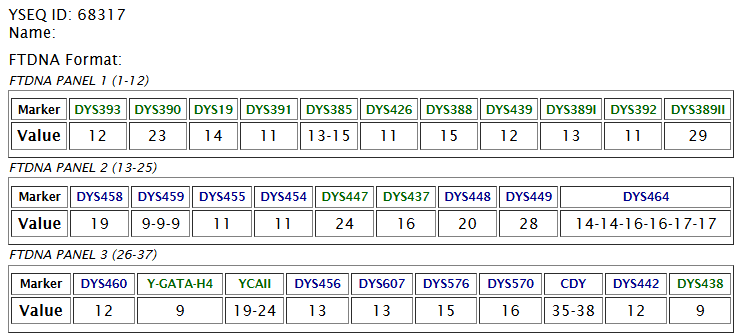 Исследовано 37 маркеров в лаборатории YSEQ.