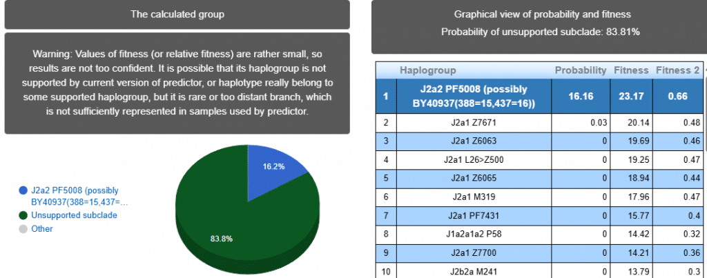 Выявлена гаплогруппа J2a. Наиболее вероятный субклад >> L581 >> Y397526 > Y24510