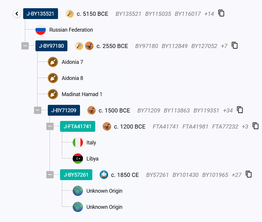 Древо FTDNA в данной ветке лучше проработано:
