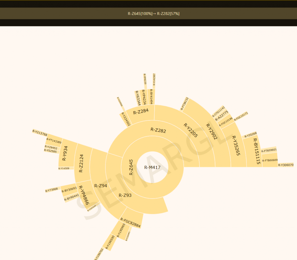 Adam > A0-T > A1 > A1b > BT > CT > CF > F > GHIJK > HIJK > IJK > K > K2 > K2b > P > P-V1651 > P-M1254 > P-P337 > P-P284 > P-P226 > R > R-Y482 > R1 > R1a > M459 > M735 > M198 > M417 > Z645 > Z283 > Z282 > Z280 > CTS1211 > Y2205 > Y35 > CTS3402 > Y33 > CTS8816 > Y2898 > Y2902 > Y2910