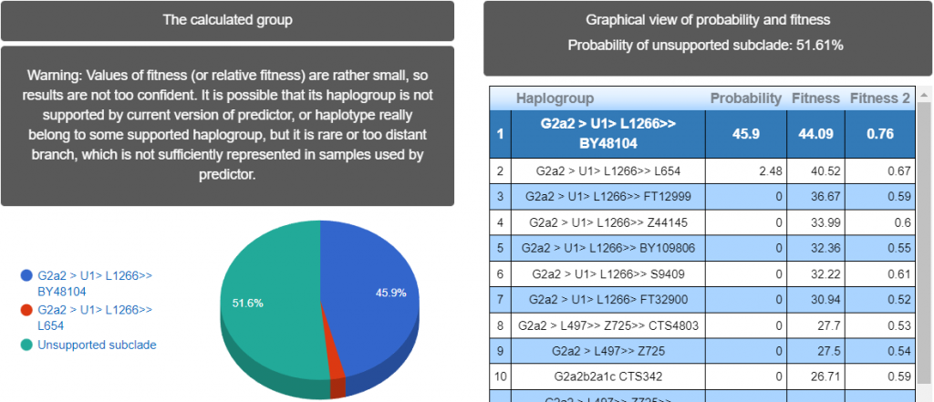 Выявлена гаплогруппа G2a2. Субклад G-L1264 >> Y87806