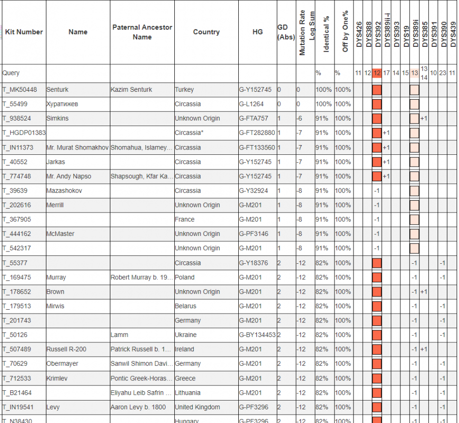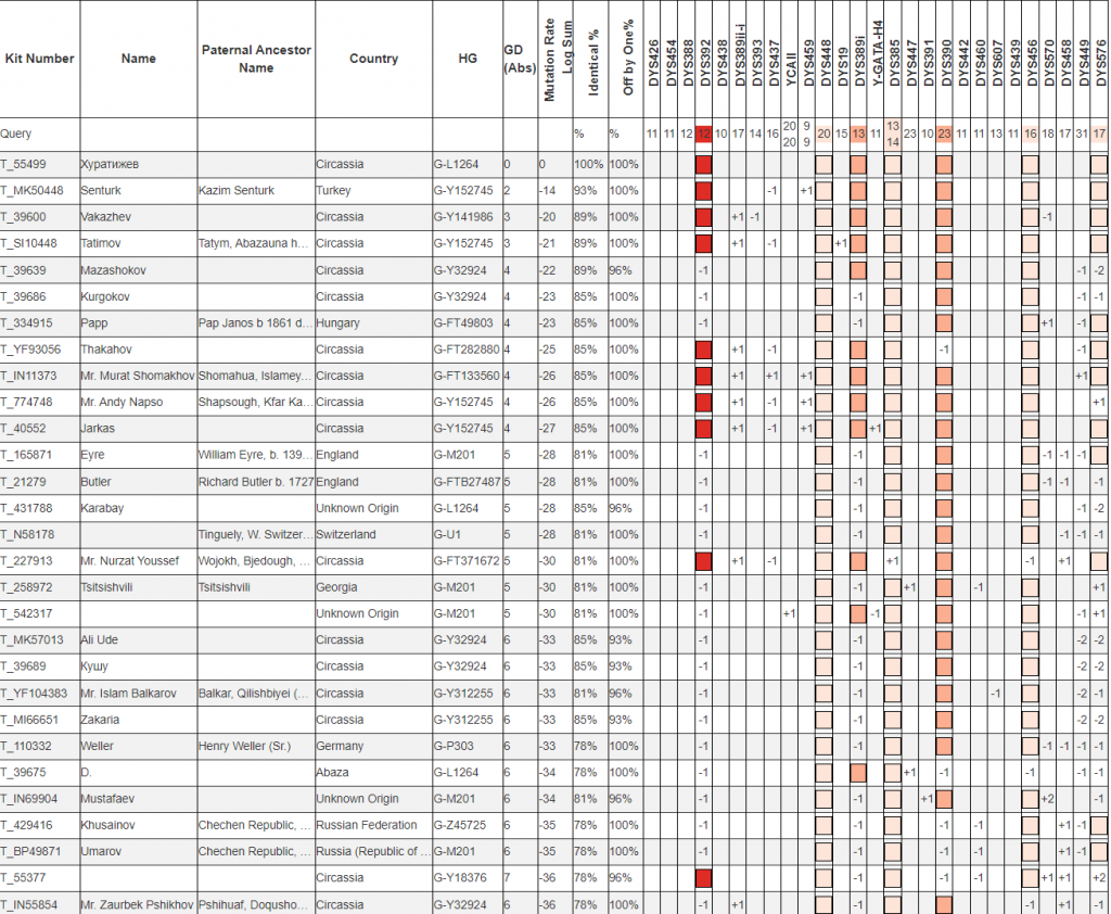 DYS392 = 12 выдает ветку условно называемую «шапсугской». Если убрать некоторые другие маркеры, которые искажают картину получаем следующий рисунок