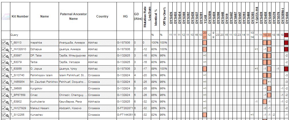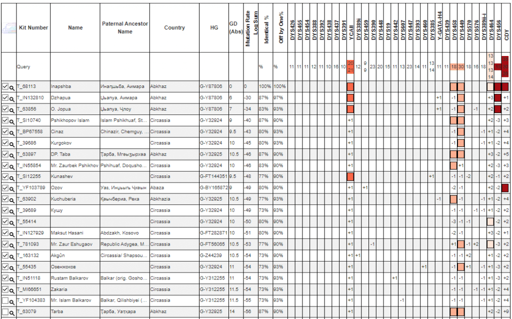 По результатам теста Инапшба не совпал с другим Инапшба, но выявлено совпадение (5-6) с одной из ветвей рода Джопуа в селе Аймара. Для более точного определения нужен глубокий тест.