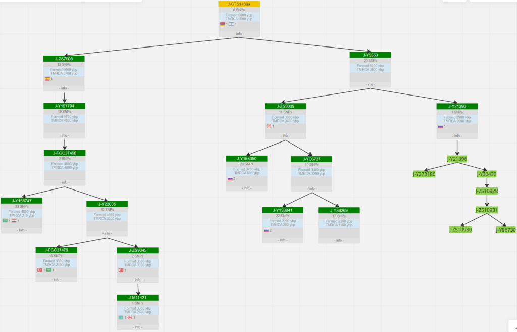 Указанная выше последовательность — это цепочка из субкладов, накопленных предками протестированного за более чем 200 тысяч лет, начиная с Y-хромосомного Адама. Линии, находящиеся слева, являются предковыми к тем, что расположены правее.