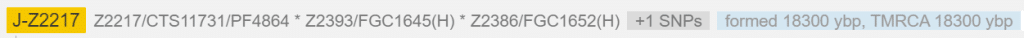Z2217 или J1a2 делится на L620 (J1a2a) и CTS1026 (J1a2b). Дистанция между J1a2a и J1a2b ~ 18,3 тыс. лет.