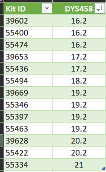 Один из отличительных признаков гаплогруппы J1 это дробное значение маркера DYS458. К сожалению только в лаборатории YSEQ такие маркеры даются без округлений. Из 13 протестированных там J1 только у одного DYS458 не дробный.