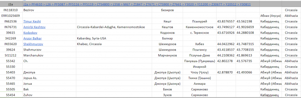 Абхазия, Кабарда, Грузия, Турция, Чечня, Дагестан, Чувашия. Сюда попадают и кабардинцы, у которых нет глубоких тестов. 100% подтвержденный FT370290 Шахмурзов.