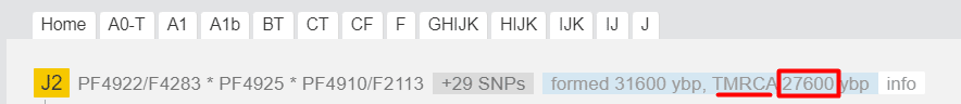 Дистанция до общего предка всех J (J1 и J2) ~ 31,5 тысяч лет назад.
