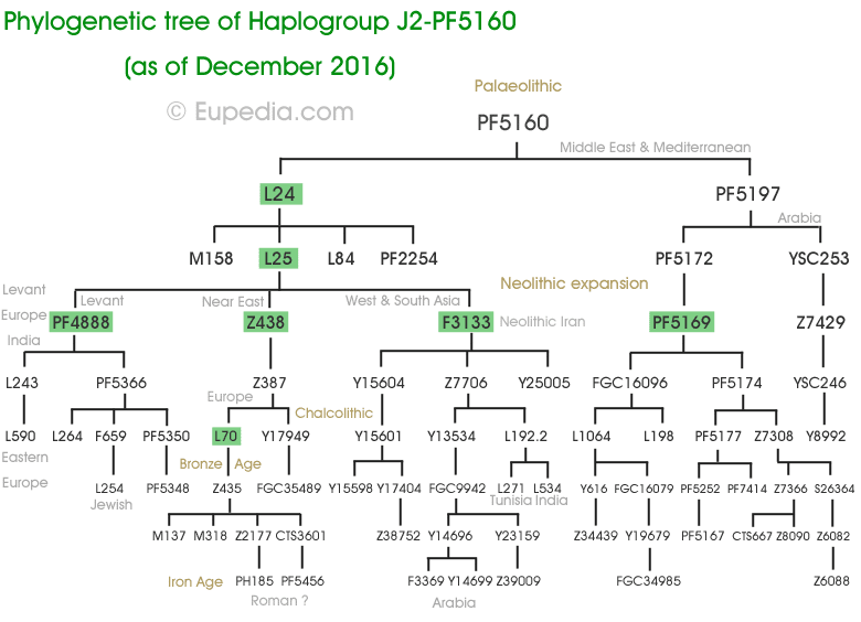 Здесь представлены очень древние крупные линии. На следующих картинках более развернутое представление одной J2 PF5116 и PF5160