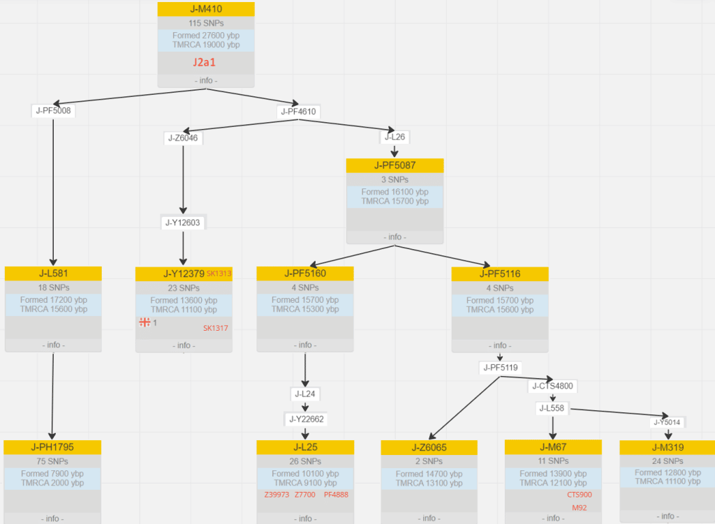 Гаплогруппа J2 имеет сложную структуру состоящую из множества разных линий.